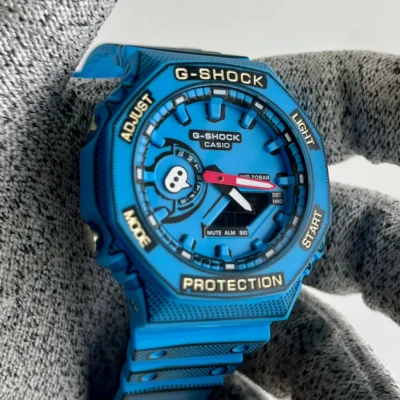 Gshock GM-2100WS-7ADR Stainless Steel Bezel Blue Analog-Digital Dial White Resin Strap Men’s Watch